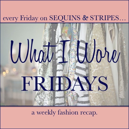 Every Friday at Sequins and Stripes, I will be sharing some outfits from my week. Because this has been a short week for my newbie blog, I decided to link up with {av} over at Long Distance Loving to give you a glimpse of my typical uniform. In the summertime, you will almost always find me in a dress or skirt with a pair of flats and some fun accessories. In the fall, dresses and boots until it is time to transition into my skinny jeans and a fishermen sweater. I try to purchase trendy pieces at a price that doesn’t break the bank and I usually go for novelty over basics, or spruce up my basics with some fun accessories.Β