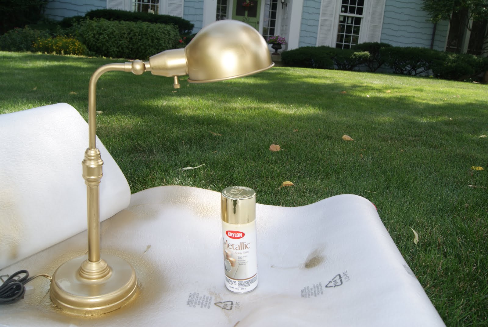 Sunday I ventured home to the suburbs to spend the day with my family. I indulged a little DIY project…lamp + gold spray paint.