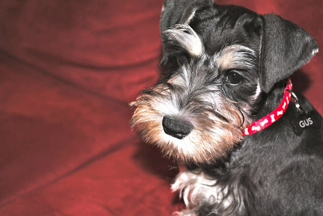 This is Gus. The newest addition to my family. He is a miniature schnauzer and is cute as a button. How adorable are those little eyebrows? We love him.