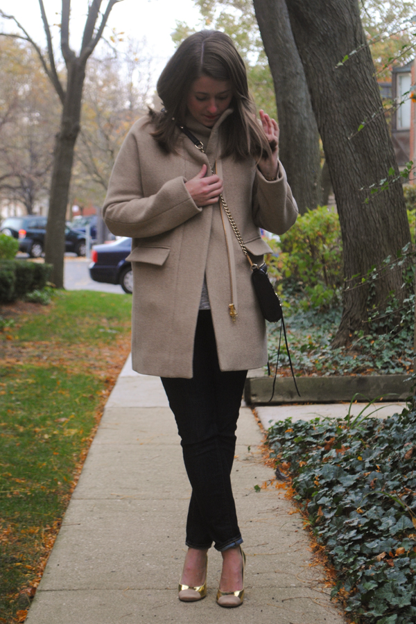 J.Crew completely stole the show in this outfit, but for very good reason. Like I mentioned last week, I snatched up this coat and heels at a J.Crew event and they have quickly become my go-to’s for meetings, client lunches, drinks with the girls and dinner with Dave. I also took a note from Alicia, and the adorable + chic ways she glams up a sweatshirt. I have to say, easy and effortless, my kind of outfit.
