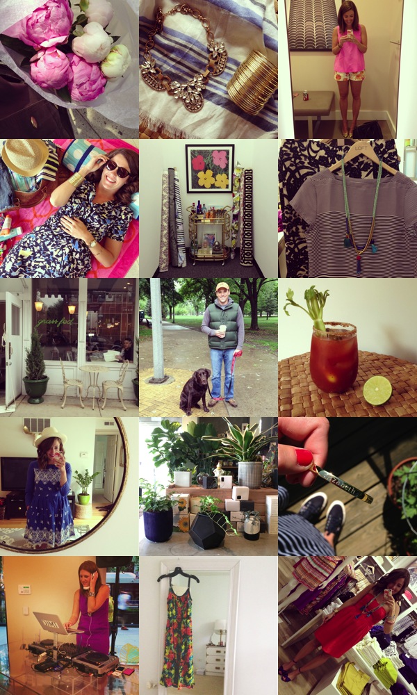 Fresh peonies. gifted T&J Designs Deco necklace, Jules Smith cuff c/o Charm & Chain, Target scarf.  Madewell Bow Back top and Zara shorts. Shooting with TJ Maxx for R29 My Stylist. Our office bar cart from Society Social. Styling up a mannequin at LOFT {top, pants, necklace}. A cute little spot in Bucktown. My boys 🙂 . Bloody mary’s on a Sunday morning. Our new mirror and a peek at our new plant from Sprout Home. My new bracelet thanks to Sarah Chloe c/o Bauble Bar, and some navy Superga’s. DJ Megan Taylor spinning beats at the LOFT Grand Opening party last night! I picked up this gorgeous LOFT floral dress for my summer weddings. What I wore to the event: this dress {c/o LOFT}, this necklace {c/o LOFT}, a bunch of these bracelets, and my LR wedges