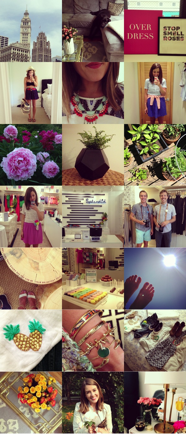 Left to right: Sunny Chicago, a lazy Webster, customized OVER DRESS print and Stop and Smell the Roses print in my office, first pool day with my Mar Y Sol tote and THML shorts, a new 2 Hello Beautiful necklace, pattern mix at J.Crew {in this top, this skirt, this sweater}, pink peonies in LP, a happy little love fern from Sprout Home, our patio garden, I co-hosted an event at the new Splendid store at Old Orchard Mall and wore this top and this skirt paired with these Ban.do poms, the cute boys behind Stoffer Photography, a simple reminder from Splendid, sweet treats, toes in the sun, a pair of pineapples, a recent arm party {Hermes, Sarah Chloe, Stella & Dot, Meredith Hahn, 2 Hello Beautiful}, outfit prep for a shoot, pretty garden roses on our coffee table, shooting in the park with Heather Talbert, and my morning routine.