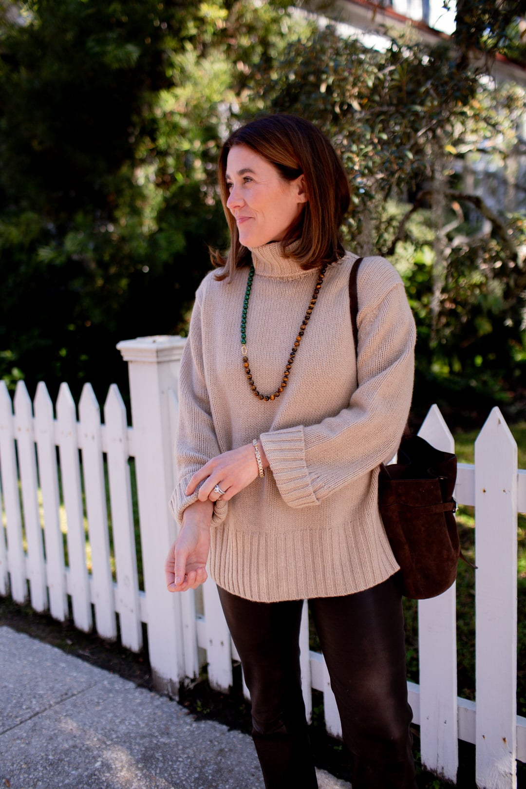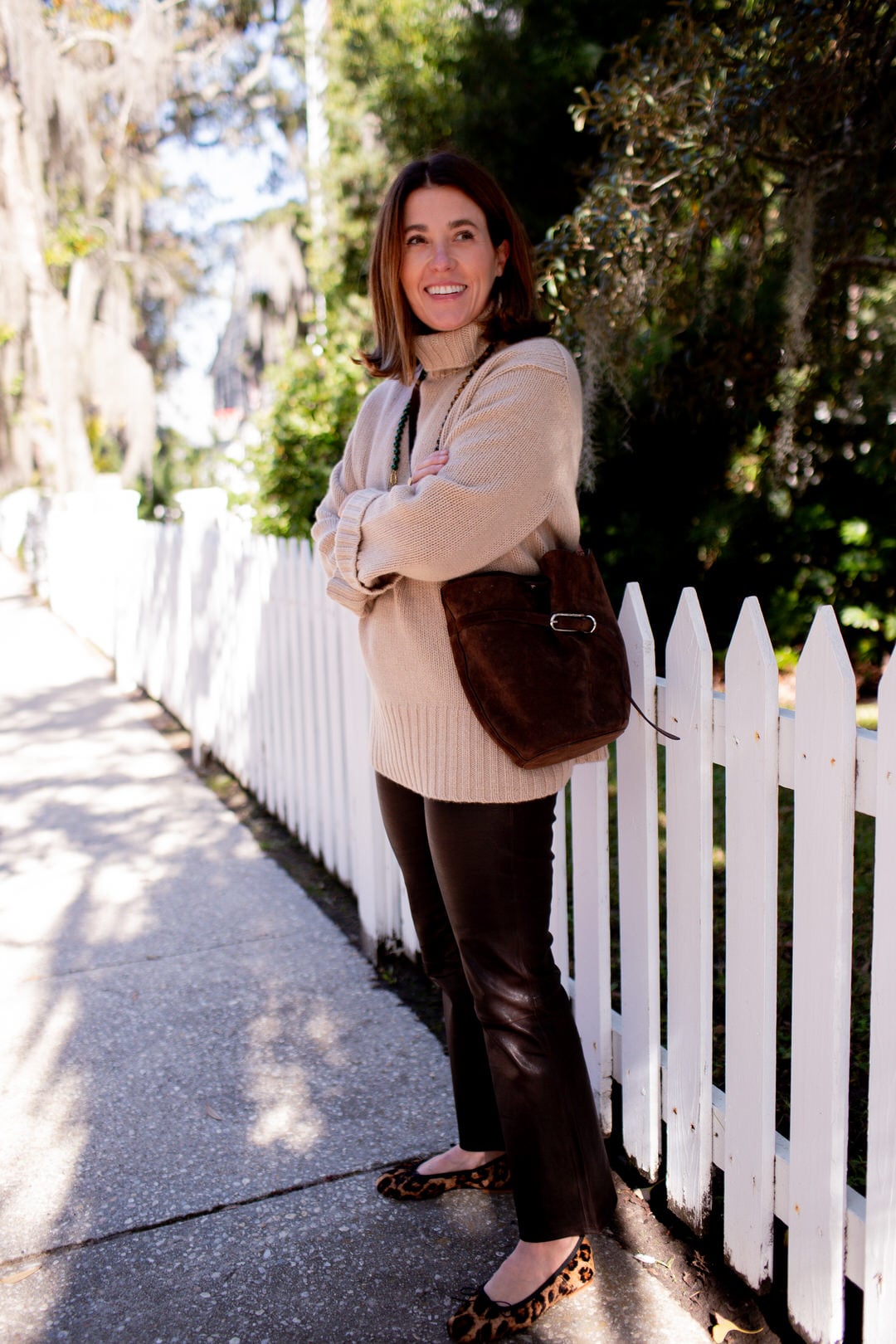 shop this look: Jenni Kayne Sweater, Frame Leather Pants, Mansur Gavriel Flats (on sale!), Hart x Grace Atwood Necklace (sold out but similar here and here), Bauble Bar Bracelet, Liffner Suede Bucket Bag