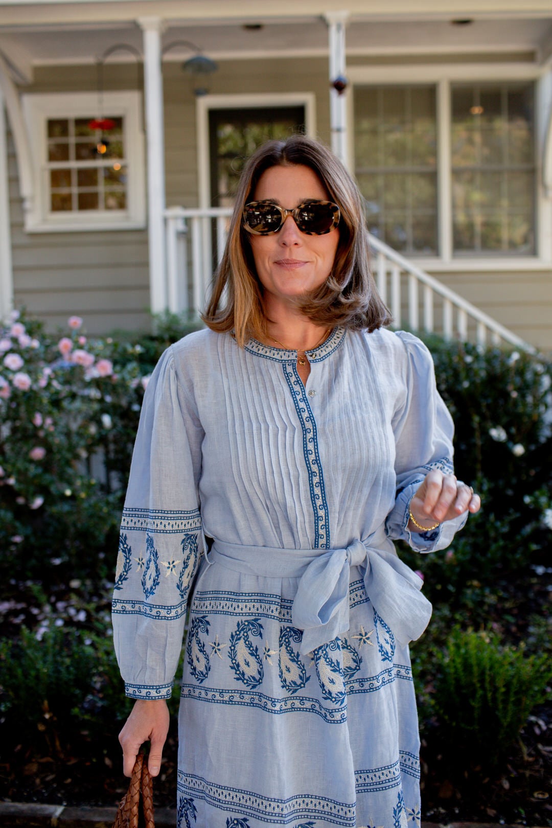 shop this look: Asha Piper Dress (wearing a small), Liffner Mini Basket Bag (sold out), Freyrs Aria Sunglasses, Loeffler Randall Goldy Boots